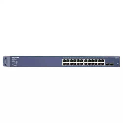 NETGEAR ProSafe Smart Switches fill the gap between unmanaged and fully managed switches. The family of ProSafe Smart Switches is designed for growing businesses that want control over their network without the cost and complexity of a full Layer 2 management implementation. These PoE-capable Smart Switches, the GS724TP provide power and data using built-in IEEE 802.3af PoE on all 24 or 48 ports. In addition, they offer an intuitive Web-based management tool for quick and easy deployment and configuration making it ideal for deploying access points, VoIP phones and IP-based surveillance cameras. This switch is equipped with highly advanced features such as access control lists (ACL), 802.1x port authentication, enhanced QoS, rate limiting and IGMP snooping among others to provide a small and medium-sized business with a network that is geared for growth while providing scalability and reliability. With the utility of 24 or 48 10/100/1000 Mbps ports, two or four combinations (copper/hot-swappable small form-factor pluggable (SFP)) Gigabit ports for optional fiber connectivity, growing business networks, classrooms and workgroups can benefit from superior performance and keep up with expanding network needs. These high-performing switches feature a non-blocking wire-speed architecture with a 48 Gbps or 96 Gbps switching capacity for maximum data throughput. All 24 and 48 RJ-45 ports automatically negotiate to the highest speed and support Auto Uplink™ technology to make the right link.