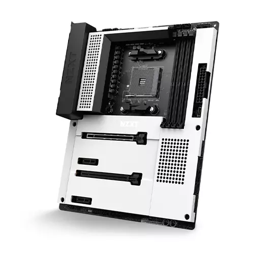 The NZXT B550 N7 Matte White AM4 ATX Gaming Motherboard From NZX. Designed around AMD’s B550 chipset, the NZXT B550 N7 Motherboard delivers everything you need to build an incredible gaming PC. Features include built-in Wi-Fi 6E connectivity, integrated fan controller, front panel USB 3.2 Gen2 Type-C, RGB accesories supported across all manufacturers, and more. The NZXT B550 N7 Motherboard cover perfectly matches the color and finish of your NZXT case, creating a visually seamless backdrop for your components. Wi-Fi 6E connectivity with updated specs for B550 chipset.Digital RGB lighting control through CAM: advanced lighting with numerous presets and custom modes and compatibility across the board for all lighting accessories. NZXT B550 N7 Motherboard Has Digital fan control: convenient fan profiles within CAM for seven independent fan channels. Integrated rear I/O shield and efficient layout ensures straightforward and optimal setup with easy upgradeability. Compatible with 3rd Gen AMD™ Ryzen™ processors (3000, 4000, and 5000 Series Processors), Intel® Wi-Fi 6E wireless connectivity and Bluetooth V5.2 .Two M.2 connectors for storage devices.Multi-GPU support with AMD CrossFireX™ Technology. NZXT B550 N7 Motherboard Supports memory overclocking speeds of up to 4600+ MHz and XMP. NZXT B550 N7 Motherboard has 8-channel high-definition audio.