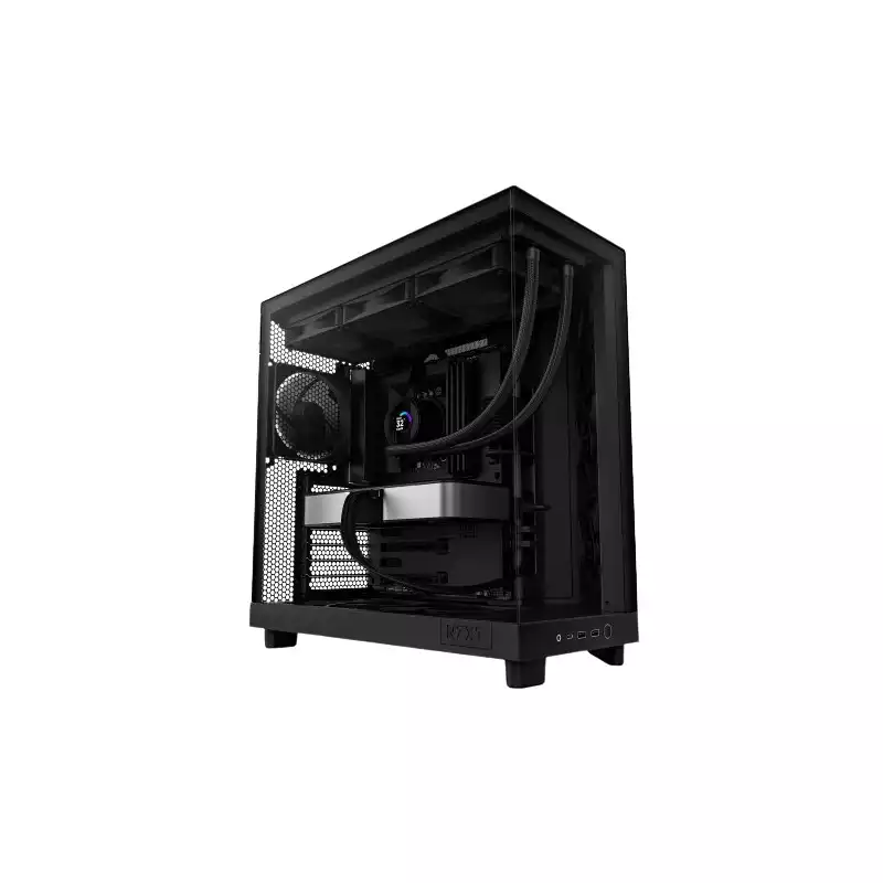 The NZXT H6 Flow now avvailable at TechLand BD introduces a sleek and efficient design in its black variant, a compact dual-chamber mid-tower airflow case catering to ATX, Micro-ATX, and Mini-ITX motherboards. Crafted from robust SGCC steel, the case boasts ultra-clear tempered glass panels, and for the black edition, an option for dark-tinted tempered glass. Standing at 435 mm in height (including feet) and measuring 287 mm in width and 415 mm in depth, this case weighs in at 9.4 kg. It accommodates a CPU cooler with a height clearance of 163 mm, a GPU with a length clearance of 365 mm, and a PSU with a length clearance of 200 mm. The case ensures ample space for cable management (91 mm) and supports a top radiator with a clearance of 30 mm. Front I/O ports include two USB 3.2 Gen 1 Type-A ports, one USB 3.2 Gen 2 Type-C port, and one headset audio jack. Its interior features seven standard expansion slots, two 2.5" drive bays, and one 3.5" drive bay. The ventilation system is robust, supporting three 120 mm fans at the front-right (including three F120Q fans), three 120 mm or two 140 mm fans at the top, two 140 mm fans at the bottom, and one 120 mm fan at the rear. Additionally, the case incorporates high-performance mesh filters and can house radiators of up to 360 mm at the top and 120 mm at the rear. The included F120Q airflow fans operate at 1200 ± 240 RPM, delivering an airflow of 62.18 CFM, a static pressure of 1.05 mm - H2O, and a noise level of 25.1 dBA.