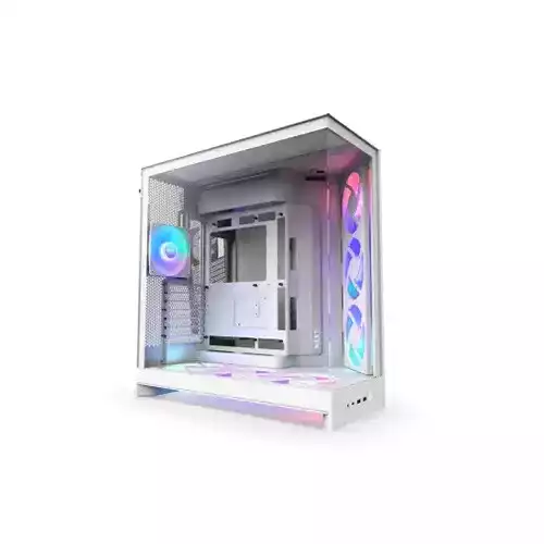 NZXT H9 Flow RGB+ Dual-Chamber Mid-Tower ATX Airflow Case – White is a beautifully engineered, premium chassis designed to deliver exceptional airflow performance, ultra-clean aesthetics, and maximum hardware compatibility for high-end gaming and professional PC builds in Bangladesh. Built with a striking dual-chamber layout, the H9 Flow RGB+ separates your power supply and cables from the main hardware, providing unparalleled airflow and creating a visually clean build environment that showcases your components through its clear tempered glass panels. It supports E-ATX (up to 277mm), ATX, Micro-ATX, and Mini-ITX motherboards, making it highly versatile for all types of users—from gamers to creators who need advanced cooling and expansion flexibility. Cooling is where this case truly shines, offering support for a massive number of fans and radiators, including front-right, top, and bottom mounting options for up to three 120mm or 140mm fans, and a rear 120mm slot. It comes pre-installed with 2 x F420 RGB Core fans and 1 x F120 RGB (CV) fan, ensuring brilliant RGB lighting and strong airflow right out of the box. The radiator support extends up to 420mm at the front-right and top, making it ideal for users with high-performance AIO coolers or full custom water-cooling loops. GPU compatibility is outstanding, supporting graphics cards up to 459mm (or 410mm when using a thick 420mm AIO), ensuring full support for flagship GPUs like the RTX 4090. For storage, the case includes 2.5-inch drive support for 4+2 slots and 2 × 3.5-inch bays, offering excellent flexibility for SSDs and HDDs. With USB 3.2 Gen 1 Type-A ports, USB 3.2 Gen2x2 Type-C, and a headset jack, the front I/O panel delivers convenient and fast connectivity. Built using strong SGCC steel and premium clear tempered glass, the H9 Flow RGB+ ensures durability while offering a stunning showcase for RGB components. Its dual-chamber design improves cable management, allowing users to keep cables hidden and airflow unrestricted. The case also supports CPU coolers up to 165mm, PSUs up to 200mm, and features 7 standard expansion slots. With its high airflow performance, spacious interior, clean aesthetics, and premium build quality, the NZXT H9 Flow RGB+ White stands out as one of the best cases for high-performance gaming setups and stylish RGB builds in Bangladesh.NZXT H9 Flow RGB+ Mid-Tower ATX Airflow Case in Bangladesh Tech Land BD: