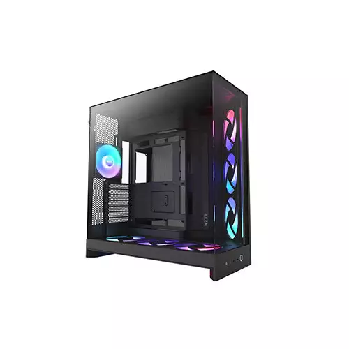 NZXT H9 Flow RGB+ Mid Tower E-ATX Gaming Computer Case (Black) is a premium dual-chamber airflow-optimized chassis designed for high-end gaming PC builds in Bangladesh, offering exceptional cooling performance, spacious interior layout, and stunning aesthetics. Engineered with a clear tempered-glass side panel, the case showcases your components beautifully while maintaining excellent thermal efficiency through its advanced airflow structure. It supports extensive fan and radiator configurations, including 3 × 120/140 mm fans at the front-right, 3 × 120/140 mm at the top, 3 × 120/140 mm at the bottom, and 1 × 120 mm at the rear, ensuring that heat is handled efficiently even during heavy gaming or rendering sessions. The case includes two F420 RGB Core fans and one F120 RGB Core (CV) fan, delivering high airflow output with impressive RGB visuals. With airflow ratings of 98.61 CFM and 55.17 CFM, along with static pressures of 3.2 mmH2O and 1.27 mmH2O, this casing guarantees optimal cooling for powerful GPU and CPU setups. It supports liquid cooling radiators up to 420 mm, making it perfect for custom loops or high-performance AIO coolers. Inside, the H9 Flow RGB+ provides ample hardware compatibility, supporting E-ATX, ATX, Micro-ATX, and Mini-ITX motherboards, along with GPU lengths up to 459 mm, ideal for the latest RTX or Radeon flagship graphics cards. Storage flexibility is excellent, offering six 2.5-inch bays and two 3.5-inch bays, ensuring smooth expansion for SSDs and HDDs. Cable management is made easy through its dual-chamber design, allowing clean routing and clutter-free presentation. The case is built with durable SGCC steel, reinforced tempered glass, and a well-optimized internal structure to ensure longevity and improved build experience. With a maximum CPU cooler height of 165 mm and 200 mm PSU support, this PC case caters to both gamers and content creators who demand high performance, style, and future-proof build options. Whether you’re building a custom RGB rig or a professional workstation, the NZXT H9 Flow RGB+ delivers exceptional performance, style, and airflow for the best gaming experience in Bangladesh.