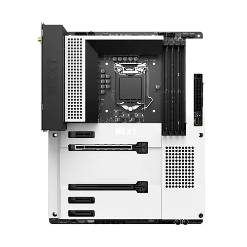 NZXT N7 Z590 ATX Motherboard Built on the Z590 chipset, you can access an LGA1200 socket, four dual-channel DDR4 RAM slots, six SATA III ports, and two M.2 interfaces. Equip your rig with an array of graphics and utility cards with one PCIe 4.0 x16, one PCIe 3.0 x16 (in x4 mode), and three PCIe 3.0 x1 slots. Connect various resource-demanding peripherals such as cameras and external drives with USB 3.2 Gen 1 and Gen 2 Type-A ports. A single USB 3.2 Gen 2x2 port offers up to 20 Gb/s data transfer speeds, suitable for workstation hubs, audio interfaces, and more high-powered devices. You can use Bluetooth 5.2 technology to leverage wireless devices such as controllers and speakers. Wi-Fi 6E (802.11ax) technology enables you to connect to your wireless network easily or use the RJ45 LAN port if you prefer a hard-wired connection.