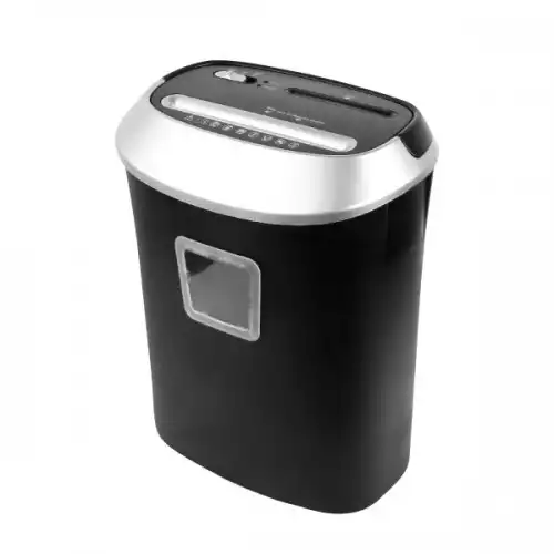 The Ofitech OS1201D Paper Shredder has 12 sheets (80 gsm) Shred Capacity with CD, Credit Card, Stapler Pin. Ofitech OS1201D Paper Shredder featured with Cross Cut Type Cutting (Cutting Size: 5 × 38 mm (0.19” × 1.49”)). Here, the Lift of Basket Bin has 25 Liter ( 195 Sheets ) Capacity. The Ofitech OS1201D Paper Shredder is capable of 3 min ON/40 min OFF Duty Cycle and also it has Power/ Shredding/ Jam/ Door/ Open/ Overheat/ Bin full Indicators. This Ofitech OS1201D Paper Shredder comes with (H × W × D) 460 × 360 × 638 (mm) Dimension and 6.5 kg