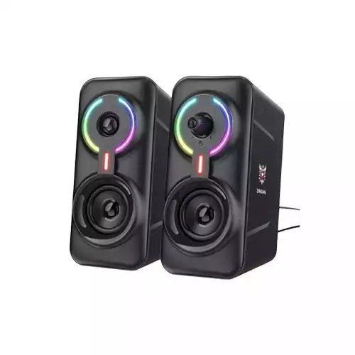 ONIKUMA L6 Multimedia Gaming Speaker in Black, available at Tech Land BD, is a compact and powerful audio solution designed to elevate gaming, music, and multimedia experiences in Bangladesh. With a sleek design measuring 7.7 x 17 x 10 cm, this speaker system delivers 10W total output power (5W x 2) through dual full-range speakers, providing immersive 360° surround sound with HiFi quality. It supports versatile connectivity options, including Bluetooth 5.0 for stable wireless pairing and a 3.5mm audio jack with USB wired control for plug-and-play compatibility with PCs, laptops, and consoles. The push-type RGB lighting with six customizable modes enhances your setup’s aesthetic, creating a vibrant gaming atmosphere, controlled via a single knob that also adjusts volume (long press to power on/off). The package includes the L6 RGB Speaker and a user manual for easy setup. Its compact size and robust ABS construction make it ideal for desktops, workstations, or entertainment spaces. Backed by a 1-year warranty, the ONIKUMA L6 ensures durability and reliability. Perfect for gamers and multimedia enthusiasts seeking high-quality audio and dynamic visuals, this speaker is a great addition to any setup Techland. Purchase the ONIKUMA L6 Multimedia Gaming