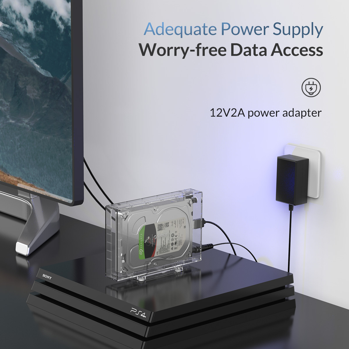 ORICO 3159U3 Transparent Series 3.5 inch USB3.0 Hard Drive Enclosure with Holder. The ORICO 3159U3 Transparent Series 3.5 inch USB3.0 Hard Drive Enclosure with Holder is a high-quality storage device designed to store your valuable data safely and conveniently. The product model is ORICO-3159U3, and it is made of transparent PC material, giving it a stylish and modern look. The device comes with an output interface of USB3.0 Micro B and an input interface of SATA3.0, providing a high-speed transfer rate of up to 5Gbps. The power supply is 12V2A, making it stable and efficient. It is compatible with different operating systems such as Windows, Mac, and Linux, allowing you to use it with various devices. The installation process is tool-free, making it easy to install and use. The hard drive enclosure comes with a holder that helps to keep the hard drive in place, preventing it from moving around or falling. The holder ensures that the hard drive is secure and safe while in use. Additionally, the device comes with a shockproof sponge pad, which helps to protect the hard drive from damage due to shock or vibration.