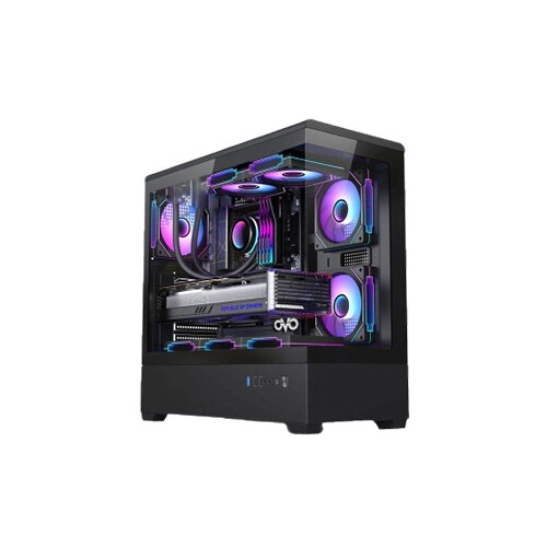 OVO CC2-D01 Full-Tower Gaming Case offers a spacious and stylish solution for high performance PC builds. It supports E-ATX, ATX, Micro-ATX, and Mini-ITX motherboards. This makes it flexible for different setups. The full tower design provides enough space for advanced hardware. It includes five ARGB infinity fans for strong cooling performance. The front panel comes with two ARGB fans for airflow. The top includes two fans for heat exhaust. The rear fan improves overall cooling efficiency. The tempered glass front and side panels enhance visual appeal. They also allow users to showcase internal components. The case supports up to 360mm liquid cooling systems. This ensures better thermal performance during heavy workloads. It allows GPU installation up to 370mm length. This supports high end graphics cards easily. The internal layout supports efficient airflow management. The case includes USB 3.0, USB 2.0, and HD audio ports. This ensures easy connectivity for devices. The build quality ensures durability and long term use. The black color design gives a modern gaming look. It supports proper cable management for a clean setup. The large structure allows easy installation of components. It is suitable for gamers and PC enthusiasts. The case supports high airflow for stable performance. It reduces overheating during gaming or heavy tasks. The design fits modern gaming environments. It offers both performance and aesthetic value. This gaming case is ideal for building powerful desktop systems in Bangladesh.