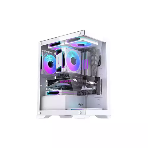 OVO CC4315-W ARGB Infinity Fan Ice Gaming Case is a stylish, well-ventilated mini-tower case designed for modern PC builders in Bangladesh. Built to support Micro-ATX and ITX motherboards, this gaming case combines compact size with smart internal space, making it suitable for both gaming and performance-focused setups. Its white exterior, paired with tempered glass panels on the front and left sides, delivers a clean, premium look that highlights your internal components. The case features an excellent airflow system with three pre-installed ARGB Infinity fans, ensuring consistent cooling during long gaming sessions. With support for graphics cards up to 310mm long and CPU coolers up to 165mm tall, the OVO CC4315-W ARGB Infinity Fan Ice Gaming Case offers flexibility for various hardware configurations. The inclusion of a magnetic dust filter helps keep the system clean, while the front I/O panel provides easy access through USB 3.0, USB 2.0, and HD audio ports. Constructed using a combination of acrylic, aluminum alloy, steel, plastic, and tempered glass, this case balances durability with visual appeal. For users seeking performance, airflow, and eye-catching ARGB aesthetics in a compact form, the OVO CC4315-W ARGB Infinity Fan Ice Gaming Case is a dependable and visually impressive choice.Buy the Best OVO CC4315-W Gaming Case in Bangladesh from Tech Land BD