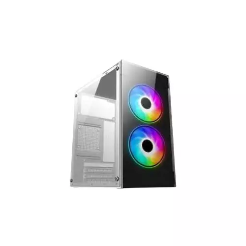 The PC Power Crystal Glass Mini Tower features a compact design with dimensions of 260 x 168 x 350mm, perfectly suited for small form-factor gaming setups. It comes equipped with three built-in cooling fans to ensure proper ventilation and temperature control for high-performance components. The case includes 1x USB 3.0 and 2x USB 1.0 ports for easy access to peripherals, along with 1x audio port for audio connectivity. The built-in power supply (PSU) is mounted at the top, supporting seamless power distribution. The case is equipped with a transparent side window, allowing users to showcase their build’s interior and lighting effects. Though it does not feature an optical drive bay, its stylish white design and crystal glass elements make it an appealing choice for gamers looking for both aesthetics and utility.