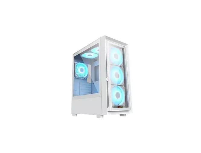 - Sleek white mid-tower case with tempered glass panels