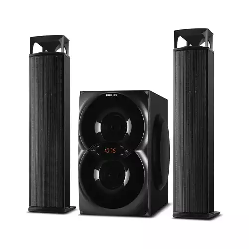 You can easily enjoy the convenience and fun of accessing more music and photos via the USB and SD card slots.Make one easy connection and enjoy all your music from portable devices and computers. Simply plug your device to the AUDIO-IN (3.5 mm) port on your Philips set. With computers, the connection is typically made from the headset output. Once linked, you can enjoy your entire music collection directly, on a set of superior speakers. Philips simply delivers better sound.This Philips speaker has 50W RMS total output power. RMS refers to Root Mean Square which is a typical measurement of audio power, or rather, the electrical power transferred from an audio amplifier to a loudspeaker, which is measured in watts. The amount of electrical power delivered to the loudspeaker and its sensitivity determines the sound power that is generated. The higher the wattage, the better the sound power emitted by the speaker.The built-in FM tuner lets you enjoy your favorite songs or news from your radio station every day. Simply tune into the station that you want to listen. This speaker comes with 01 year warranty.