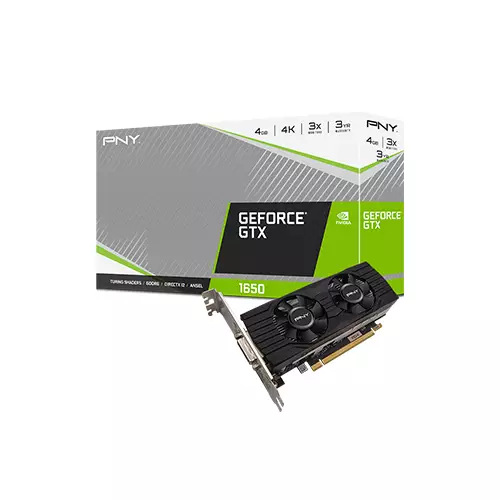 The PNY GeForce GTX 1650 4GB Dual Fan Low Profile Graphics Card is a powerful and compact graphics card designed for gamers and PC enthusiasts. Built on the advanced Turing architecture, this graphics card delivers impressive performance and stunning visuals for an enhanced gaming experience.With the NVIDIA GeForce Experience™ software, users can optimize their gaming settings, capture and share gameplay videos, and stay up to date with the latest driver updates. NVIDIA Ansel enables users to take breathtaking in-game screenshots with customizable filters and effects, allowing for creative and immersive gaming moments. Additionally, NVIDIA Highlights automatically captures and saves the best gaming moments, ensuring that no epic play is missed.Equipped with Game Ready Drivers, the PNY GeForce GTX 1650 ensures smooth and reliable gameplay, providing compatibility with the latest titles and optimizing performance for the best possible gaming experience. It supports the Microsoft® DirectX® 12 API, Vulkan API, and OpenGL 4.6, allowing for advanced graphics rendering and improved efficiency.The HDCP 2.2 support ensures compatibility with the latest 4K content and protected media playback. Whether you're streaming movies or playing games in high resolution, this graphics card guarantees a seamless viewing experience. The NVIDIA GPU Boost™ technology intelligently boosts clock speeds to maximize performance when needed, providing an extra performance boost during demanding gaming sessions.In addition, the PNY GeForce GTX 1650 4GB Dual Fan Low Profile Graphics Card comes with a low profile bracket included, making it suitable for compact and space-constrained systems. This feature allows users to easily install the graphics card in small form factor PCs without compromising performance.Overall, the PNY GeForce GTX 1650 4GB Dual Fan Low Profile Graphics Card is an excellent choice for gamers looking for a compact and powerful graphics card. Its impressive features, including the Turing architecture, NVIDIA GeForce Experience™ software, and low profile compatibility, make it a versatile option for both casual and hardcore gamers alike.