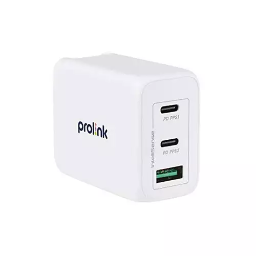 The Prolink PTC36501 65W 3-port GaN PD Charger with IntelliSense has 3 charging ports, allowing customers to charge three devices at the same time with a total charging power of 65W. This charger is equipped with power delivery 3.0 and quick-charge 4+ technologies. You may now use the QC3.0 Type-A connector to charge your devices at up to 4x the normal charging speed and the PD3.0 Type-C port to charge up to 50% of your battery capacity in 30 minutes. GaN technology allows for a smaller, lighter charger with greater charging efficiency. It has IntelliSense, which detects and distributes the appropriate amount of charging electricity for your connected device.