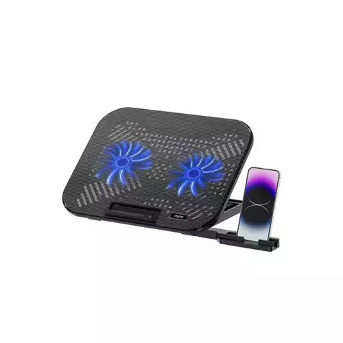 Rapoo CF200 High Efficiency Laptop Cooler is a smart and reliable cooling solution designed to improve laptop performance while enhancing everyday comfort. Built for users who spend long hours working, studying, or enjoying multimedia, this cooling pad helps maintain optimal temperatures by effectively dissipating heat from the laptop base. It is equipped with dual high-efficiency fans that deliver consistent airflow, reducing overheating and supporting smoother system performance even during demanding tasks. The quiet fan operation ensures a distraction-free environment, making it suitable for offices, classrooms, and home setups alike.Designed with user comfort in mind, the Rapoo CF200 features an ergonomic structure with multiple adjustable height levels, allowing users to customize the viewing and typing angle according to their preference. This helps reduce wrist fatigue, neck strain, and poor posture during extended use. The cooler’s sturdy yet lightweight construction makes it easy to carry, while its anti-slip surface keeps your laptop stable and secure during operation. It is compatible with most laptops up to 14 inches, making it a versatile choice for a wide range of devices.Adding to its practicality, the CF200 includes a built-in phone stand, enabling you to keep your smartphone within reach for calls, notifications, or reference while working. Powered through a USB interface, it requires no external power adapter, ensuring simple plug-and-play use with minimal cable clutter. Overall, the Rapoo CF200 High Efficiency Laptop Cooler combines effective cooling performance, ergonomic comfort, and thoughtful convenience features in a sleek design. It is an excellent choice for users seeking a dependable cooling pad that enhances productivity, protects their laptop, and delivers long-term comfort in daily use.