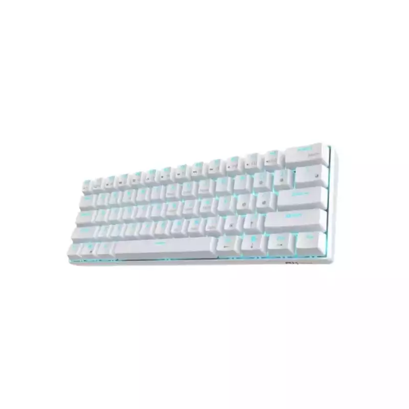 The Royal Kludge RK61 is a compact, 60% layout gaming keyboard that offers both wired and wireless functionality. It features Gateron Brown switches, known for their smooth, tactile feel and durability, with a lifecycle of over 50 million keystrokes. The keyboard is white in color and has a dimension of 289 x 103 x 39mm, weighing just 0.50kg, making it portable and convenient for on-the-go gaming. It comes with ABS double shot keycaps and an operating force of 50g-60g. The keyboard is equipped with a 1450 mAh battery for long-lasting wireless use. It’s compatible with multiple operating systems including Windows XP, Win2000, Win7, Win8, Win10, Mac, IOS, and Android. The product comes with a one-year warranty (box must be submitted for warranty claim) and is available at TechLand BD.