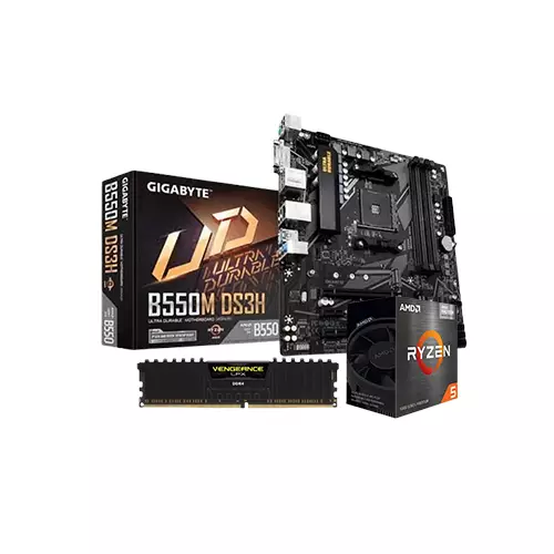AMD RYZEN 5 5600 PROCESSOR GIGABYTE B550M DS3H MOTHERBOARD CORSAIR VENGEANCE LPX 8GB 3200Mhz RAM COMBO