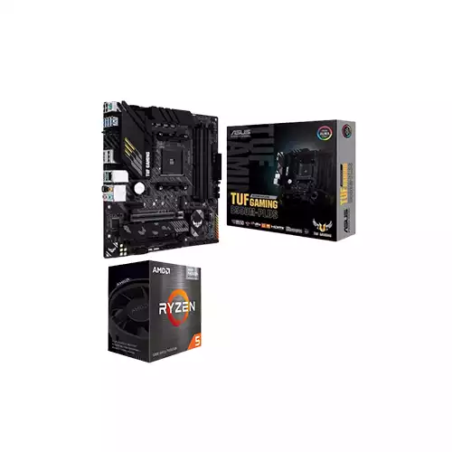 The AMD Ryzen 5 5600 Processor and ASUS TUF B550M-Plus Motherboard Combo is a high-performance computer setup. The Ryzen processor has 6 cores with 12 threads, a base frequency of 3.5 GHz, and a cache size of 32 MB. It has a TDP of 65 W and supports DDR4 memory type. The processor does not have its own graphics card but supports DisplayPort and HDMI technologies. The motherboard has an AM4 socket for the third generation AMD Ryzen processors and third-generation AMD Ryzen processors with Radeon graphics. It also has four DIMM slots that support up to 128 GB of DDR4 memory at various speeds. The motherboard has one PCIe 4.0 x16 slot (x16 mode) for third-gen AMD Ryzen processors and one PCIe 3.0 x16 slot (x16 mode) for third-gen AMD Ryzen processors with Radeon graphics. It also has one PCIe 3.0 x16 slot (x4 mode) and one PCIe 3.0 x1 slot. The motherboard supports various storage devices such as M.2, SATA 6Gb/s ports, and RAID configurations. It has LAN connectivity via the Realtek RTL8125B 2.5Gb Ethernet, audio output via the Realtek ALC S1200A 7.1 Surround Sound High Definition Audio CODEC, and various external I/O ports such as PS/2 keyboard/mouse, DisplayPort, HDMI, USB 3.2 Gen 2 ports, USB 3.2 Gen 1 ports, USB 2.0 ports, optical S/PDIF out port, and audio jacks. The motherboard comes in MATX form factor, measuring 9.6 inches by 9.6 inches, and has a UEFI AMI BIOS with a 256 Mb flash ROM. The combo comes with a three-year warranty. Bangladesh's top retailer of computer hardware and applications is Techland BD. A hallmark of Techland BD is its top-notch client support. They have a helpful and knowledgeable crew that is always willing to help customers. The large selection of Ryzen Combo available at Techland BD is well recognized. The large selection of Ryzen Combo available at Techland BD is well recognized.