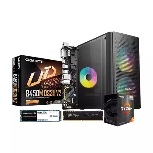 The AMD Ryzen 5 5600G Gigabyte B450M DS3H V2 8GB RAM 256GB SSD Budget PC offers a powerful and reliable computing experience at an affordable price. The centerpiece of this configuration is the AMD Ryzen 5 5600G processor, featuring 6 cores and 12 threads, along with integrated Radeon Graphics. It provides excellent performance for both work and gaming. The motherboard is the GIGABYTE B450M DS3H V2, an ultra-durable AMD motherboard that ensures stability and longevity. With 8GB of Kingston Fury Beast RAM running at 3200MHz, multitasking becomes seamless and smooth. The Team MP33 256GB M.2 PCIe SSD guarantees fast storage and quick boot times. The PC is housed in the Value-Top VT-M200 Micro ATX gaming case, adding a touch of style to your setup. Warranty coverage varies depending on the individual components, with the processor, motherboard, and SSD offering 3 years of protection, while the RAM comes with a lifetime warranty. Bangladesh's top retailer of computer hardware and applications is Techland BD. A hallmark of Techland BD is its top-notch client support. They have a helpful and knowledgeable crew that is always willing to help customers. The large selection of Desktop PC available at Techland BD is well recognized. The large selection of Budget PC available at Techland BD is well recognized.