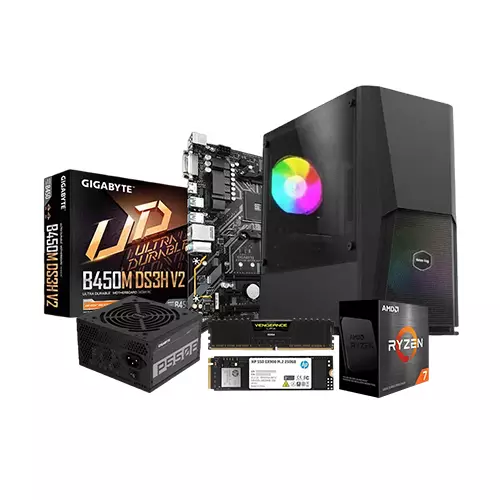 The AMD Ryzen 7 5700G GIGABYTE B450M DS3H V2 8GB RAM 250GB SSD BUDGET PC is a budget-friendly computer that offers powerful performance and reliability. It is equipped with an AMD Ryzen 7 5700G processor, which features 8 cores and 16 threads, along with Radeon Graphics for enhanced visuals. The processor comes with a 3-year warranty, ensuring peace of mind. The motherboard is a GIGABYTE B450M DS3H V2 Ultra Durable AMD motherboard, also backed by a 3-year warranty. The PC includes 8GB of Corsair Vengeance LPX DDR4 RAM operating at a speed of 3200MHz, and it comes with a lifetime warranty. Power is supplied by the Gigabyte P550B 550W 80 Plus Bronze Certified Power Supply, which has a 2-year warranty. Storage is provided by the HP EX900 M.2 250GB PCIe NVMe SSD, offering fast and efficient data access, and it too has a 3-year warranty. The casing is a Value Top VT-B703 Mid Tower Micro-ATX Gaming Case in black color, although it does not come with any warranty. Overall, this budget PC presents a solid configuration with reliable components and warranty coverage based on the individual products' warranty periods. Bangladesh's top retailer of computer hardware and applications is Techland BD. A hallmark of Techland BD is its top-notch client support. They have a helpful and knowledgeable crew that is always willing to help customers. The large selection of Desktop PC available at Techland BD is well recognized. The large selection of Budget PC available at Techland BD is well recognized.