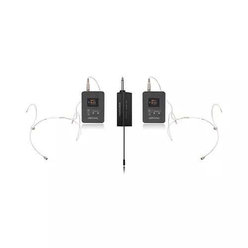 Dual backpacked microphone system with 200 selectable frequency channels to avoid interference between each other.High grade audio processing chip and high fidelity sound processing circuit design ensures excellent sound performance.。Channel ID code function effectively prevents from external noise or channel crosstalk noise Adopted UHF dynamic compression shunt technology separating and loading high/low frequency automatically to achieve best dynamic performance.Compatible with any devices with MIC port by mini-size universal receiver.Suit for Family Karaoke,Computer Karaoke,Video chat,Product promotion,Outdoors lecture,Teaching,Military training,Tour guide,Exhibition and Small promotional sitesPLL synthesized technology ensures stable RF transmission and reception.