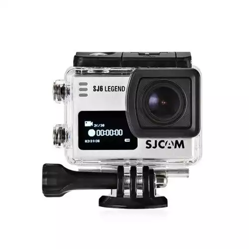The SJCAM SJ6 Legend features a waterproof case, gyro stabilization, and 4K resolution to capture sharp, high-quality footage no matter what the scene. It can record MOV/MP4 H.264 video at a maximum resolution of 2880 x 2160p at 24 fps and takes 16MP JPEG photos at a maximum resolution of 4608 x 3456. It has a 166° wide-angle lens that facilitates quick focus and captures a large field of view. It features a Panasonic MN34120PA CMOS sensor with a Novatek 96660 chipset. It comes with a 2" LCD rear touchscreen that provides access to settings such as distortion correction, metering, 180° rotation, exposure time, adjustable FOV, loop recording, double file, raw photos, GYRO, EV, color, and white balance, each allowing you to fine-tune your shots. It also has a front LCD with basic information like timecode, resolution, battery level, and record mode. The SJ6 comes with multiple mounting options, bases, and plates for optimal placement flexibility, as well as a waterproof back housing door and a touchscreen door for non-waterproof access during your shoot.