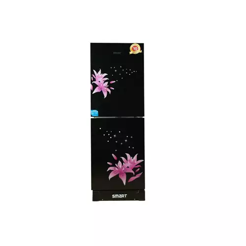 The SMART 240 LTR TOP MOUNT REFRIGERATOR - BLACK, Model SER-240TS is a direct cool refrigerator with a net capacity of 240L and a gross volume of 248L. It has a fabulous ultra-modern glass door color that adds to its aesthetics. The refrigerator operates at an electrical rating of Input Power: 89-95W,160-260V,50Hz and has a very fast cooling speed. It has a hygienic clean air system and an anti-bacterial gasket to ensure that the stored items remain fresh and free from germs. The refrigerator has a vast storage capacity, and the interior is made of virgin and food-grade plastic liner. It has a low noise compressor, and it uses R600a Refrigerant, which is HFC-free. The foaming density of the refrigerator is 35-37(kg/m3). It has a lock and key feature, and the defrosting is manual, while the temperature control is mechanical. The refrigerator has an interior LED light for added convenience. The condenser is made of 100% copper, and the refrigerant used has a very low GWP. The gross/net weight of the refrigerator is 67.83/62.40kgs, and the product dimension is (W*D*H) 577X590X1572mm, while the packing dimension is (W*D*H) 604×670×1705mm. Bangladesh's top retailer of
