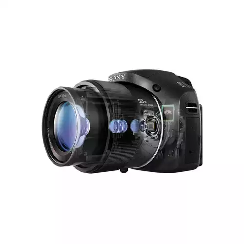 Sony Cyber-shot DSC-HX300 H Series digital camera features 20.4 megapixels Exmor R CMOS image sensor, 50x optical zoom lens (35mm equiv: 24-1200mm), Optical SteadyShot image stabilization, 3 inch 921k dot LCD screen, full manual controls, electronic viewfinder, Full 1080p HD video recording, ISO 80 - 12800, 1cm minimum focusing distance, 10 fps continuous shooting, artistic picture effects, sweep panorama mode etc.