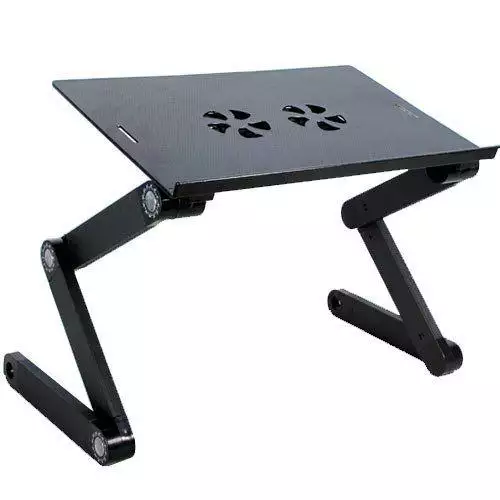 T9 Laptop Tables are the best quality aluminium laptop tables in the market. This item is very use full for any size laptops and notebooks. It can hold up to 21 inch laptops and can carry weight of 15 kgs. T9 Aluminium Laptop table also comes with an attachable/detachable mouse pad. This model has a big six cooling fan and that runs with USB power from Laptop/Power bank/Direct AC Adapter. The T9 Aluminium laptop table is easy to carry and it will make your life easy. You can work long hours or watch movies at bed, on the floor or when travelling in a car.