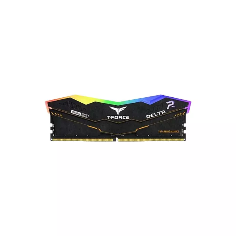 The Team T-Force Delta TUF RGB 16GB DDR5 6400MHz Heatsink Gaming Desktop RAM, is now available at TechLand BD. Designed by Team, this RAM module packs a punch with its 16GB capacity and lightning-fast 6400MHz bus speed, ensuring smooth gameplay and multitasking. The sleek black heatsink enhances cooling efficiency and adds a style touch to your setup. Equipped with XMP 3.0 for easy overclocking and on-die ECC for enhanced stability, this RAM is optimized for Intel Z690 platforms, making it a perfect choice for gamers seeking top-tier performance. With RGB lighting and compatibility with Asus Aura Sync, you can personalize your gaming rig's aesthetics to match your style. Certified by the TUF Gaming Alliance, this RAM guarantees reliability and performance, backed by a product lifetime warranty. Upgrade your gaming experience with the Team T-Force Delta TUF RGB 16GB DDR5 RAM, where power and style meet for ultimate gaming excellence.| Memory | |