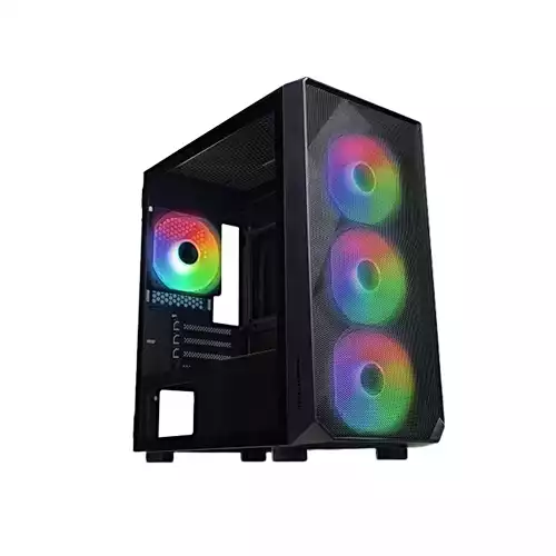 Full mesh front panel with 3 front fans for maximum air intake, combined with ventilation on the top, bottom, and rear for optimized airflow throughout the case. Polygonal mesh design for added flair to your build.