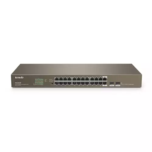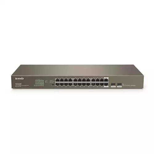 Tenda TEG1024F 24-port gigabit rackmount switch that provides an easy, rapid, and cost-effective network for IP surveillance projects, offices, workgroups, and small and medium-sized organizations. If two gigabit SFP combo ports are used to connect to Tenda optical modules, it can provide long-distance networking across distances of up to 20 kilometers.