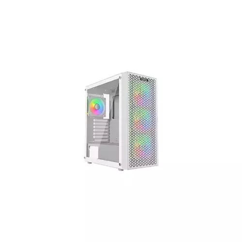 The Tharmal TH-TP300-W M-ATX Gaming Case is a mid-tower case designed to accommodate various motherboard sizes, including ATX, Micro ATX, and Mini-ITX. It comes in a stylish white color and features a left-side tempered glass panel that showcases your build, while the right side is made from sturdy metal. The front panel is made of mesh steel, ensuring excellent airflow to keep your components cool, making it an ideal choice for gamers and PC enthusiasts.