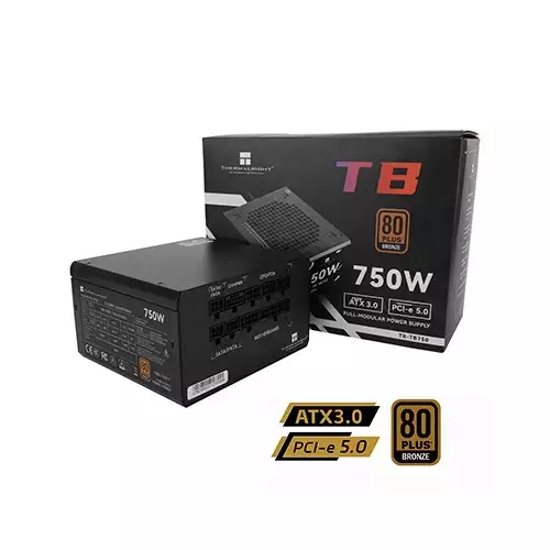 THERMALRIGHT TB 750 750W 80 Plus Efficiency Bronze Full Modular Power Supply is a high-performance PSU designed for demanding PC builds. With its 80 PLUS Bronze certification, it delivers exceptional energy efficiency and reliable power output for gaming rigs, workstations, and high-performance PCs. Its full modular design makes cable management easy and reduces clutter, while the 120mm fan ensures quiet and effective cooling.