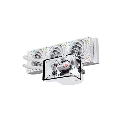 Thermalright Wonder Vision 360 Turbo ARGB CPU Cooler (Black) is a high-performance liquid cooling solution built for gamers, overclockers, and PC enthusiasts who demand superior thermal management and eye-catching aesthetics. Featuring a 6.67-inch OLED display with 2400×1080 resolution, this cooler allows users to showcase custom graphics, animations, or real-time system monitoring, combining functionality with a visually striking appearance. Its advanced cooling system incorporates a powerful pump running at 6400 RPM ±10% (MAX) and three high-performance fans operating at 3000 RPM ±10% (MAX), providing an impressive 120.38 CFM airflow to rapidly dissipate heat from even the most demanding CPUs. With a maximum noise level of 44.7 dBA, it balances high-performance cooling with acceptable acoustics. The Wonder Vision 360 Turbo utilizes dual ball bearing fans for enhanced durability and stability, while its aluminum radiator ensures efficient heat transfer and long-term reliability. The cooler also offers a maximum air pressure of 4.93 mm H2O, allowing it to maintain excellent thermal performance under heavy CPU loads. The 4-PIN PWM connector enables precise fan speed control, letting users adjust cooling performance based on system requirements. Additionally, the ARGB lighting system can be synchronized with popular motherboard RGB software such as ASUS Aura Sync, MSI Mystic Light, and Gigabyte RGB Fusion, providing endless customization possibilities for a fully personalized PC build. Compatibility is broad, supporting Intel LGA115X, 1200, 1700, 1851, 2011, 2066 sockets and AMD AM4/AM5 sockets, making it suitable for nearly any modern CPU. With a sleek black and white aesthetic, the Wonder Vision 360 Turbo enhances both performance and visual appeal for high-end gaming rigs, workstations, and creative builds. Backed by a robust warranty, this cooler guarantees durability, reliability, and excellent long-term performance. Whether you’re building a high-performance gaming system, a workstation, or an overclocked PC, the Thermalright Wonder Vision 360 Turbo ARGB CPU Cooler delivers exceptional thermal efficiency, a customizable OLED display, and striking ARGB lighting, making it one of the most advanced and visually stunning liquid coolers available in Bangladesh.