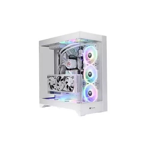 Thermaltake CTE E550 TG Snow Mid Tower Case comes with dimensions of 558.5 x 270 x 513 mm and weighs 14.5 kg. It features three 4mm tempered glass panels that provide a panoramic view of the system's components. This mid-tower case supports Mini ITX, Micro ATX, ATX, and E-ATX motherboards, ensuring compatibility with various setups. It includes seven expansion slots, multiple drive bays for both 3.5" and 2.5" drives, and a versatile cooling system with support for up to three 120mm or 140mm fans at the bottom and side, along with radiators of up to 420mm. The front I/O panel includes USB 3.0, USB Type-C, and HD audio ports for easy access. With a CPU cooler height limit of 166mm, GPU clearance of up to 443.8mm (without a radiator), and PSU clearance of up to 220mm, it accommodates high-performance components effortlessly.