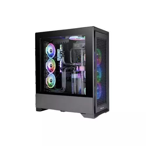 Thermaltake CTE T500 ATX Full Tower Case is a high-end chassis with dimensions of 615 x 275 x 516 mm and a weight of 15.3 kg. It features a durable construction with SPCC and ABS materials, complemented by a stunning 4mm tempered glass side panel. The case is equipped with three pre-installed 140mm CT140 fans (1500rpm, 30.5 dBA) for exceptional airflow, while offering extensive fan and radiator support, ensuring powerful cooling for high-performance systems. With support for Mini ITX, Micro ATX, ATX, and E-ATX motherboards, the case accommodates up to 7 expansion slots and multiple drive bays (4 x 3.5” or 6 x 2.5”). The I/O panel includes USB 3.2 Gen 2 Type-C, USB 3.0 ports, and an HD audio jack for seamless connectivity. Additionally, it provides generous clearance for CPU coolers up to 195mm, GPUs up to 385mm, and PSUs up to 180mm in length, making it an excellent choice for custom builds.