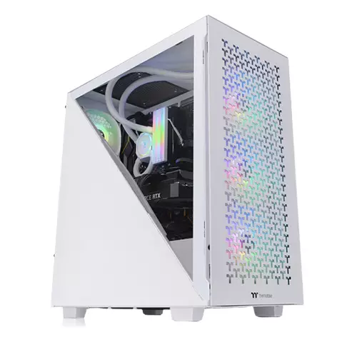 The Divider 300 TG Air Snow is an ATX mid tower case that comes with two preinstalled 120mm standard fans, a full-size mesh panel at the front, and one 3mm triangular tempered glass window on the left side.Thermaltake designed a brand-new case series that contains a mixture of open-frame-styled elements and customizable options blending all the functionalities into the Divider Series. The most exceptional feature of the Divider 300 TG Air Mid Tower Case is the two symmetrical triangular pieces comprised of a steel panel and tempered glass window on the left side. On top of that, the air edition comes with one airflow-optimized mesh panel at the front for massive airflow. These panels are tool-free and easy to remove, showcasing the components inside. Additionally, the Divider 300 TG Air comes with two 120mm standard fans at the front and rear for maximum cooling performance. The Divider 300 TG Air ATX Mid Tower Case is the next -gen gaming PC case for regular users, enthusiasts, and gamers, giving them unprecedented satisfaction.