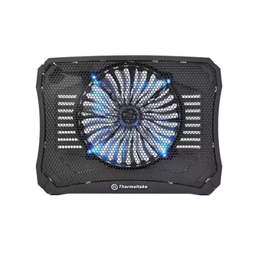 Thermaltake Massive V20 Notebook Cooler Effective cooling performance with high-quality material. Compatible with 17" notebooks and below. A large 200mm fan with big airflow offers high cooling performance. A big area of hexagon mesh allows optimal airflow to cool the notebook efficiently. USB cable management and extender make the working environment neat and tidy. Single Supreme Ventilation A massive built-in quiet 200mm LED fan with adjustable fan speed offers big airflow and high cooling performance and to reduce the overall temperature of your laptop/notebook led Light and fan speed control The including LED light switch and fan speed controller allows user to adjust the lighting or the fan speed with easy USB cable management and extender unique USB cable management and extender for easy organizing and Extention to make the working environment neat and tidy. Hexagon Shaped MeshBig area metal mesh allows optimal airflow to cool the notebook efficiently. The hexagon-shaped mesh allows the best airflow rate to aid cooling. Ergonomic Humanity V20 designed with all the ergonomic concepts, test out the appropriate ways for the user, with the best visual angle and the height position of the hand. The anti-slip design ensures notebook safety, get ready to work comfortably!