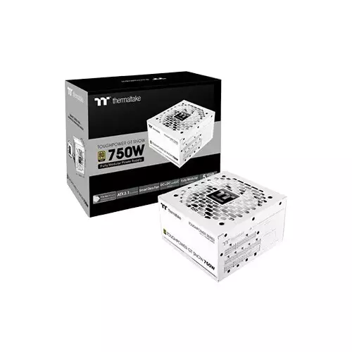 The Thermaltake ToughPower GT Snow 750W power supply by Thermaltake delivers reliable and efficient performance for gamers, creators, and professionals. With 80 Plus Gold certification, it ensures high energy efficiency while supporting demanding CPUs and GPUs. Its fully modular design simplifies cable management, and a 120mm hydraulic bearing fan keeps noise low while maintaining airflow.