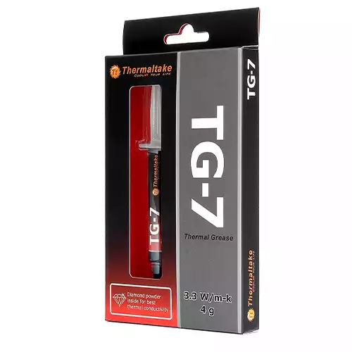 Thermaltake high performance and reliable Thermal grease with diamond powder inside for best thermal conductivity, maximizing heat transfer by eliminating the air gap between the heat source and the heat sink caused by the irregular surfaces