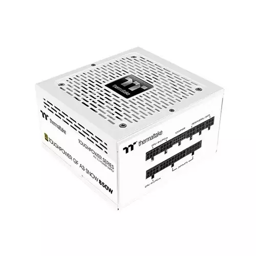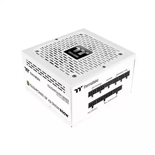 Thermaltake Toughpower GF A3 850W Fully Modular 80 Plus Gold Power Supply is a high-performance PSU designed for gamers, PC enthusiasts, and professionals seeking reliable and efficient power delivery for their high-end systems. Available in Bangladesh at Tech Land BD, this power supply boasts an 80 PLUS Gold certification, ensuring up to 90% energy efficiency under typical loads, reducing electricity costs and heat generation. With a fully modular design, cable management becomes effortless, allowing users to connect only the necessary cables for a cleaner and more optimized build. The 850W continuous power output ensures stable performance for demanding setups, including high-end GPUs like NVIDIA RTX 40 series and AMD Radeon RX 7000 series, supported by four PCI-E 6+2-pin connectors and one PCIe 12+4-pin (300W) connector for next-gen graphics cards. The 12cm FDB (Fluid Dynamic Bearing) fan ensures quiet operation with enhanced cooling efficiency, while the active PFC (Power Factor Correction) maintains consistent voltage regulation. Built to last, this PSU features a 100,000-hour MTBF (Mean Time Between Failures) and complies with multiple safety certifications (CE, FCC, UKCA, TUV, cTUVus, CB, CCC, BSMI), guaranteeing durability and protection against power surges, short circuits, and overheating. Operating within a 0°C to 45°C temperature range and 5% to 85% humidity (non-condensing), it is suitable for various environments. The snow-white color adds a sleek aesthetic to any build, making it ideal for themed PC setups. Whether you're building a gaming rig, workstation, or content creation PC, the Thermaltake Toughpower GF A3 850W delivers high efficiency, modular flexibility, and rock-solid stability, making it a top choice for power-hungry systems in Bangladesh.