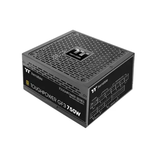 THERMALTAKE TOUGHPOWER GF3 750W Gold TT Premium Edition Power Supply is a high-efficiency, fully modular PSU crafted for gamers, PC enthusiasts, and professionals seeking reliable performance in Bangladesh. Featuring 80 PLUS Gold certification, this PSU provides up to 750W of stable power while maintaining excellent energy efficiency, minimising electricity consumption, and ensuring your components operate smoothly under heavy loads. Its 135mm fluid-bearing fan delivers quiet and effective cooling, keeping the system temperature optimal even during intense gaming or workstation tasks. With active PFC and rapid power-good signalling (100–150ms), it guarantees stable voltage, protecting your hardware from fluctuations. The GF3 includes multiple PCIe connectors, including four 6+2Pin and one 12+4Pin, making it compatible with modern graphics cards and multi-GPU setups. Its compact 150 x 86 x 160 mm design fits standard ATX cases effortlessly, while its robust construction and MTBF of 100,000 hours assure long-term durability. Combining modular convenience, high efficiency, and silent operation, the Thermaltake GF3 750W PSU is an excellent choice for anyone building a premium PC in Bangladesh.