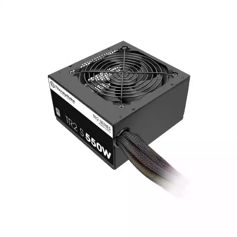 The Thermaltake TR2 S 550W is a high-quality power supply unit (PSU) available at TechLand BD. This PSU is 80 PLUS Standard Certified, ensuring 82-86% efficiency at 20-100% load. It delivers a continuous power of 550W, making it ideal for high-performance systems. The unit features a 120mm fan for optimal cooling and an Active Power Factor Correction (PFC) for enhanced power efficiency. It operates within a temperature range of 5℃ to +40℃ and a humidity range of 20% to 85%. The PSU has a hold-up time of 16msec at minimum within 60% load and a Mean Time Between Failures (MTBF) of 100,000 hours, guaranteeing long-lasting reliability. It comes with two PCI-E 6+2pin connectors and operates at a voltage of 230 Vac with a frequency range of 50 Hz - 60 Hz. This non-modular PSU is CE/CB/TUV safety approved.