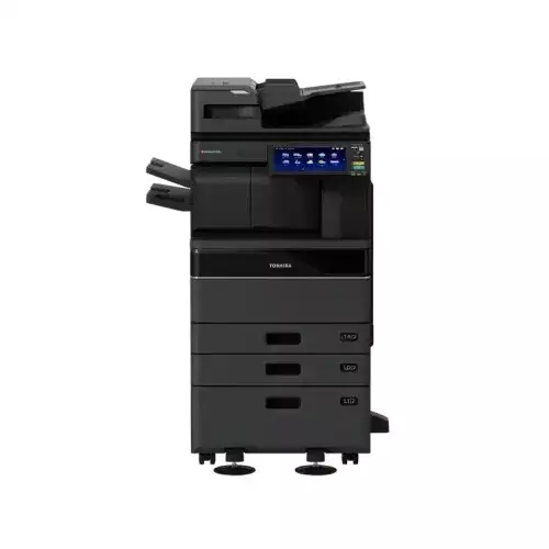 Toshiba e-Studio 5528A Multifunctional Monochrome Photocopier with RADF is a powerful and versatile office solution designed to handle the demanding printing, scanning, copying, and faxing needs of modern workplaces. Featuring a 10.1-inch multi-touch color panel, this copier provides an intuitive user interface for easy operation. With print and copy speeds of up to 55 pages per minute (A4) and 15 pages per minute (A3), it ensures fast, efficient document output. Its laser printing technology delivers crisp, clear text and sharp monochrome images at 600 x 600 dpi resolution, making it ideal for professional documents and reports. The RADF (Reversing Automatic Document Feeder) enables high-speed scanning of up to 73 pages per minute in both black-and-white and color modes, streamlining document digitization. It supports multiple scan options, including Scan to File, E-mail, e-Filing, WS Scan, and USB, offering flexibility and convenience. With automatic duplex printing, users can reduce paper waste while maintaining high productivity. The copier comes with a 6GB memory and supports LAN and USB connectivity, ensuring smooth integration into networked office environments. Built for durability and high volume, the Toshiba e-Studio 5528A has a duty cycle of 223,000 copies and a maximum paper capacity of 5200 sheets. It supports a wide range of paper sizes from A6 to A3, with weights up to 300 g/m². Its power-efficient design and robust build make it ideal for medium to large organizations requiring dependable document management. Compact yet powerful, this model combines cutting-edge technology, outstanding performance, and long-term reliability — the perfect companion for business efficiency in Bangladesh.