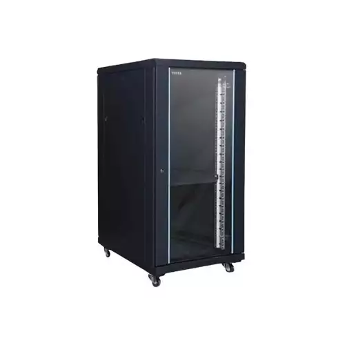 Toten 32U 600 x 800mm Server Rack, a pinnacle of sophistication and efficiency in server organization, is now available exclusively at TechLand BD. Crafted with meticulous attention to detail by Toten, this server rack embodies excellence in design and functionality, ensuring seamless integration into any server environment. With its sleek glass front door featuring a silk-screened flower pattern and a vented rear door, this rack not only enhances the visual appeal but also facilitates efficient airflow, crucial for maintaining optimal operating temperatures for your servers. Equipped with one sliding tray and one fixed tray, along with four low-noise top fans, this rack provides convenient storage options and ensures optimal ventilation and temperature regulation, safeguarding the performance of your equipment. Flexibility is a key feature of the Toten 32U Server Rack, as it comes with adjustable feet and heavy-duty castors, allowing for easy placement and relocation as needed. Additionally, cable entry points on the top cover and bottom panel, with adjustable sizes, simplify cable management, reducing clutter and enhancing overall organization within your server room or data center. The optional installation of the plinth further enhances adaptability, enabling cabinet fixation and providing under-base cable entry/ventilation tailored to your specific requirements. Constructed from SPCC cold rolled steel with a powder-coated finish, this rack offers durability and protection, with a static loading capacity of 800 kg, making it suitable for various server setups. The efficient cabinet connection, facilitated by the baying kit, ensures stability and reliability, while the removable side panels streamline maintenance tasks, allowing for easy access to your equipment when needed. The Toten 32U 600 x 800mm Server Rack is designed to elevate your server infrastructure, providing unmatched quality and performance. Whether you're setting up a new server room or upgrading an existing one, this rack offers the reliability, versatility, and durability needed to meet the demands of modern IT environments. Experience the difference with the Toten 32U 600 x 800mm Server Rack, available exclusively at TechLand BD. Elevate your server organization and optimize workflow efficiency with this top-of-the-line solution.Secure your Toten 32U 600 x 800mm Server Rack from Tech Land BD today.