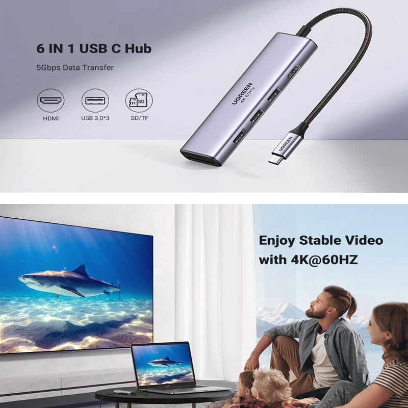 UGREEN CM511 6-IN-1 TYPE-C USB HUB PRICE IN BANGLADESH