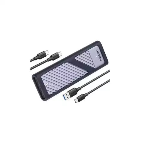 The UGREEN CM559 M.2 NVMe SSD Enclosure utilizes a USB 3.2 GEN 2 interface providing data transfer speeds of up to 10Gbps, ensuring quick access to your large files, high-resolution videos, and project backups. Supporting PCIe 3.0 with NVMe 1.3 protocol compatibility, this enclosure can accommodate NVMe M.2 SSDs with sizes 2230, 2242, 2260, and 2280, with a capacity support of up to 2TB, making it suitable for professionals handling heavy data workflows. The connector type supports M-Key and M+B Key SSDs, ensuring wide compatibility across different SSD brands. The UGREEN CM559 comes with USB C-C and USB A-C cables for universal connectivity with modern laptops, PCs, and compatible smartphones. It features an aluminium construction for durability and efficient heat dissipation during extended transfers, while maintaining a slim and lightweight form factor with dimensions of 12 x 4 x 1 millimetres, making it highly portable for travel and on-the-go usage.