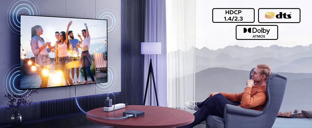 Built-in Chipset: Located on HDMI port Video Formats: RGB 8/10bpc, YCbCr4:4:4/4:2:2 8/10bpc Audio Formats: LPCM, AC-3, DTS, DTS-HD Master Audio, Dolby TrueHD, DTS:X, Dolby Atmos Audio Sampling Rate: Up to 192kHz/24bit Active/Passive: Active Variable Refresh Rate: FreeSync and G-Sync supported (VRR not supported) Operating Temperature: 0°C – 40°C Storage Temperature: -20°C – 60°C Housing Temperature (Full Load): ~46°C Power Consumption: No load ≤150 mA, Full load ≤210 mA Materials: Wire: PVC fire-retardant V0; Shell: Aluminum alloy Driver Requirements: Driver-free Supported Systems: Windows 11/10/8.1/8/7/Vista/XP, macOS, Linux Compatible Devices: PC, Laptop, Xbox, PlayStation, Steam Deck, Nintendo Switch Limitations: Does not support 2K@240Hz or Dolby Vision  |