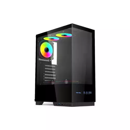 The Value-Top AUNIX 80F3D ATX Gaming Case is a sleek, functional, and performance-driven chassis designed to meet the needs of modern PC builders and gamers. Crafted with precision from high-quality SPCC steel (0.6mm thick) and finished in a fully black painted interior, this case delivers both durability and style. One of its standout features is the built-in temperature display, allowing users to conveniently monitor system temperatures in real time—ensuring optimal cooling performance during intense gaming or heavy workloads. The AUNIX 80F3D supports ATX, Micro-ATX, and ITX motherboards, offering excellent compatibility for various build configurations. It comes with ample cooling options, supporting up to one 120mm fan or radiator on the rear panel and two 120mm fans or dual 240mm radiators on the top panel, making it well-suited for both air and liquid cooling setups. Storage options include one HDD bay and two SSD mounts, providing flexibility for users who need both speed and capacity. The maximum CPU cooler height of 170mm and GPU clearance up to 330mm (300mm when front fans are installed) ensure compatibility with most high-performance components. Its I/O panel is equipped with USB Type-C, USB 3.0, USB 2.0, and HD audio ports, offering modern connectivity options for convenience and versatility. The ATX standard power supply support ensures stable and efficient power delivery for demanding systems. With a compact yet spacious dimension of 340 x 190 x 450 mm, the case provides sufficient space for cable management and optimized airflow. Whether you're building a gaming rig or a high-performance workstation, the Value-Top AUNIX 80F3D delivers the perfect balance between functionality, style, and thermal efficiency.