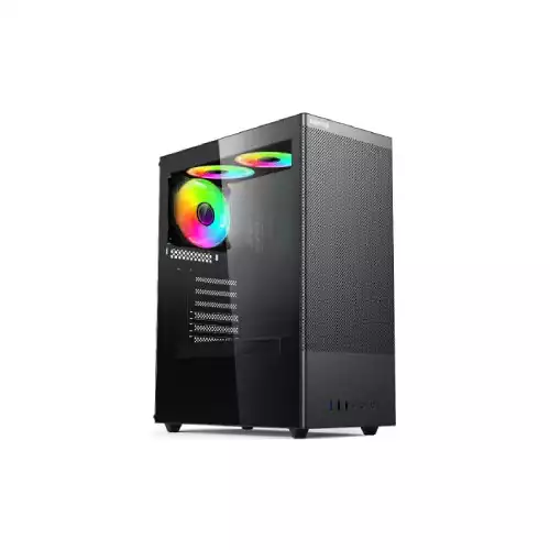 The Value-Top AUNIX 82F3 ATX Gaming Case is a stylish and performance-focused mid-tower chassis designed to deliver optimal cooling, durability, and functionality for gamers and PC builders alike. Built with precision from 0.6mm thick SPCC steel and finished in a fully black painted interior, this case combines sturdiness with a sleek, modern aesthetic. It supports ATX, Micro-ATX, and ITX motherboards, offering flexible compatibility for a wide range of components and custom builds. The AUNIX 82F3 is engineered with excellent airflow potential, supporting up to eight 120mm fans — three on the front panel, two on the top, two on the bottom shroud, and one on the rear. For liquid cooling enthusiasts, it can accommodate dual 240mm radiators on the top and a 120mm radiator on the rear, ensuring superior heat dissipation for high-performance CPUs and GPUs. Inside, the case provides ample storage options, including one HDD bay and two SSD mounts, allowing you to configure both speed and capacity to your liking. It supports graphics cards up to 330mm in length and CPU coolers up to 170mm in height, giving users the freedom to install large, powerful components. The front I/O panel is conveniently equipped with USB 3.0, USB 2.0, and HD Audio ports, enabling easy connectivity for peripherals and accessories. Designed to support a standard ATX power supply, the AUNIX 82F3 ensures reliable power management for modern gaming systems. Its tempered glass side panel offers a clear view of your components and RGB lighting, making it a perfect choice for gamers who love showcasing their setups. Measuring 340 x 190 x 443 mm, this case strikes a perfect balance between compactness and expandability, making it ideal for both minimalist and advanced gaming builds. With a clean design, excellent airflow, and flexible component support, the Value-Top AUNIX 82F3 offers exceptional value for money and performance.