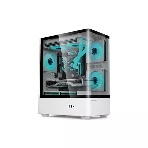 Value-top NUBIA 20F5W-MI M-ATX Gaming Casing is a premium mid-tower case designed for gamers and PC enthusiasts who want style, airflow, and functionality in one package. Finished in full white, it comes pre-installed with 5 ARGB fans to deliver excellent cooling performance and stunning lighting effects. The fan setup includes 1 × 12cm ARGB fan on the rear panel, 2 × 12cm ARGB fans with reversed blades on the PSU shroud, and 2 × 12cm ARGB fans on the front motherboard bracket, ensuring optimized airflow throughout the system. The fans are Value-top 1236 Infinite Mirror models, paired with a 10-port mini control board that can be easily managed via a switch, giving users complete control over lighting customization. The casing features a tempered glass left side panel to showcase your build, while the right side panel is made of 0.6mm SPCC steel for durability. Connectivity is convenient with USB 3.0 ×1, USB 1.1 ×1, and HD audio ports on the front I/O panel, making it easy to connect peripherals. The casing is shipped in a brown carton lined with enhanced K=K material and Styrofoam, ensuring safe delivery and protection during transport. Compact yet functional, the Value-top NUBIA 20F5W-MI offers excellent cooling, modern aesthetics, and durability, making it an ideal choice for gamers and PC builders in Bangladesh seeking a reliable, stylish case for their setups.
